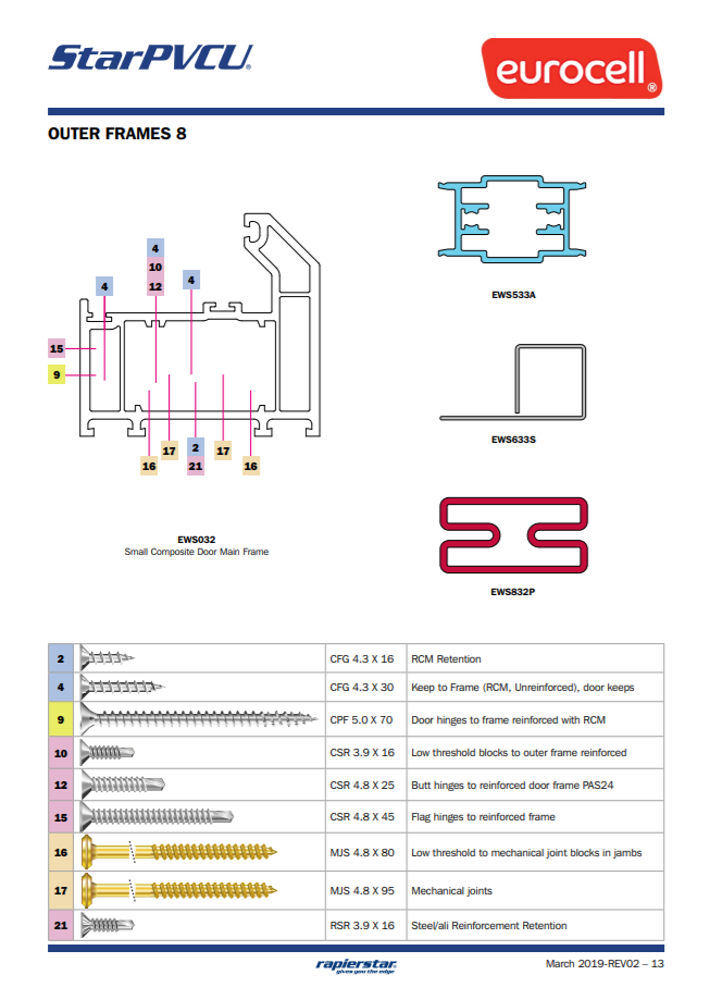 Fortunately, you don’t have to be an expert on the design of fastener threads to know which screws to use and where. Rapierstar offers easy-to-follow guidance for window makers through their Recommended Fixings Manuals (RFMs).